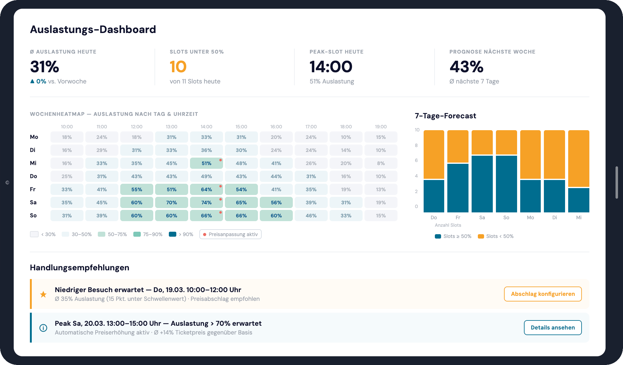 Wochenende überfüllt, Montag leer – weil du keine Möglichkeit hast, gegenzusteuern.
