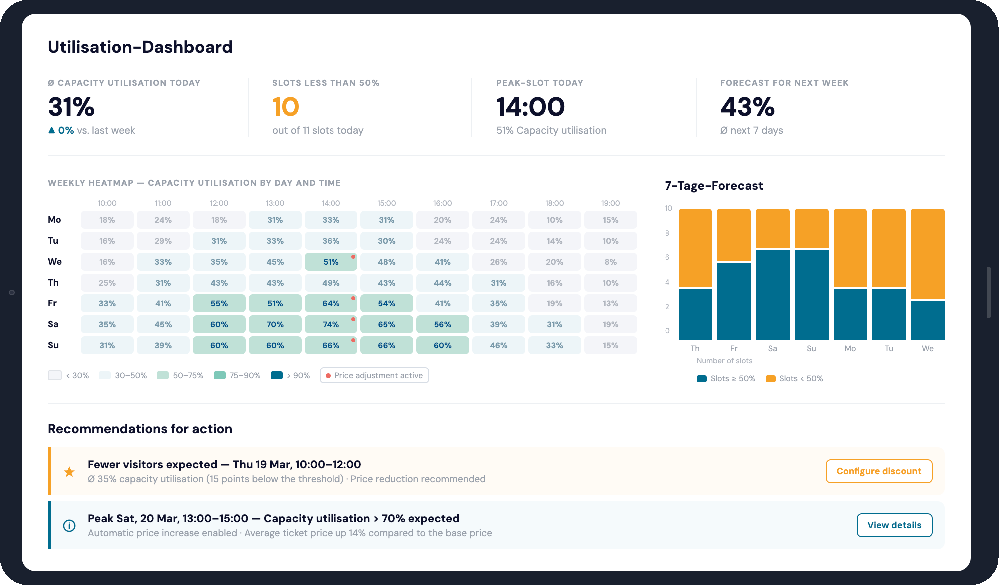 Smart visitor management doesn't mean "making it more expensive." It means: off-peak hours cheaper, peak times fairer — and more visitors throughout the day.